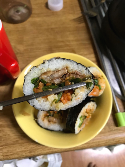 다음엔 내가 직접 삼겹살 김밥을 싸 먹어봐야겠음.