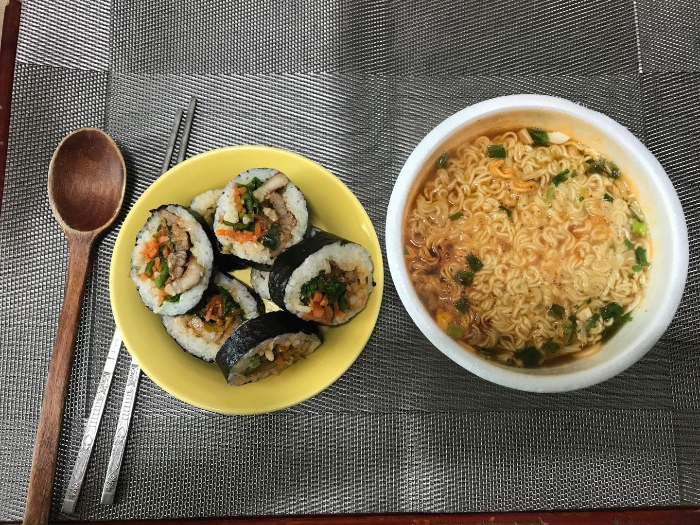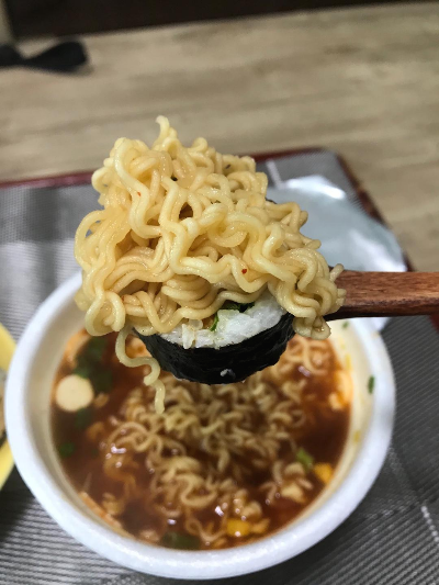 김밥만 먹기엔 아쉬우니까 라면도 함께 ^^ 컵라면은 역시 육개장!